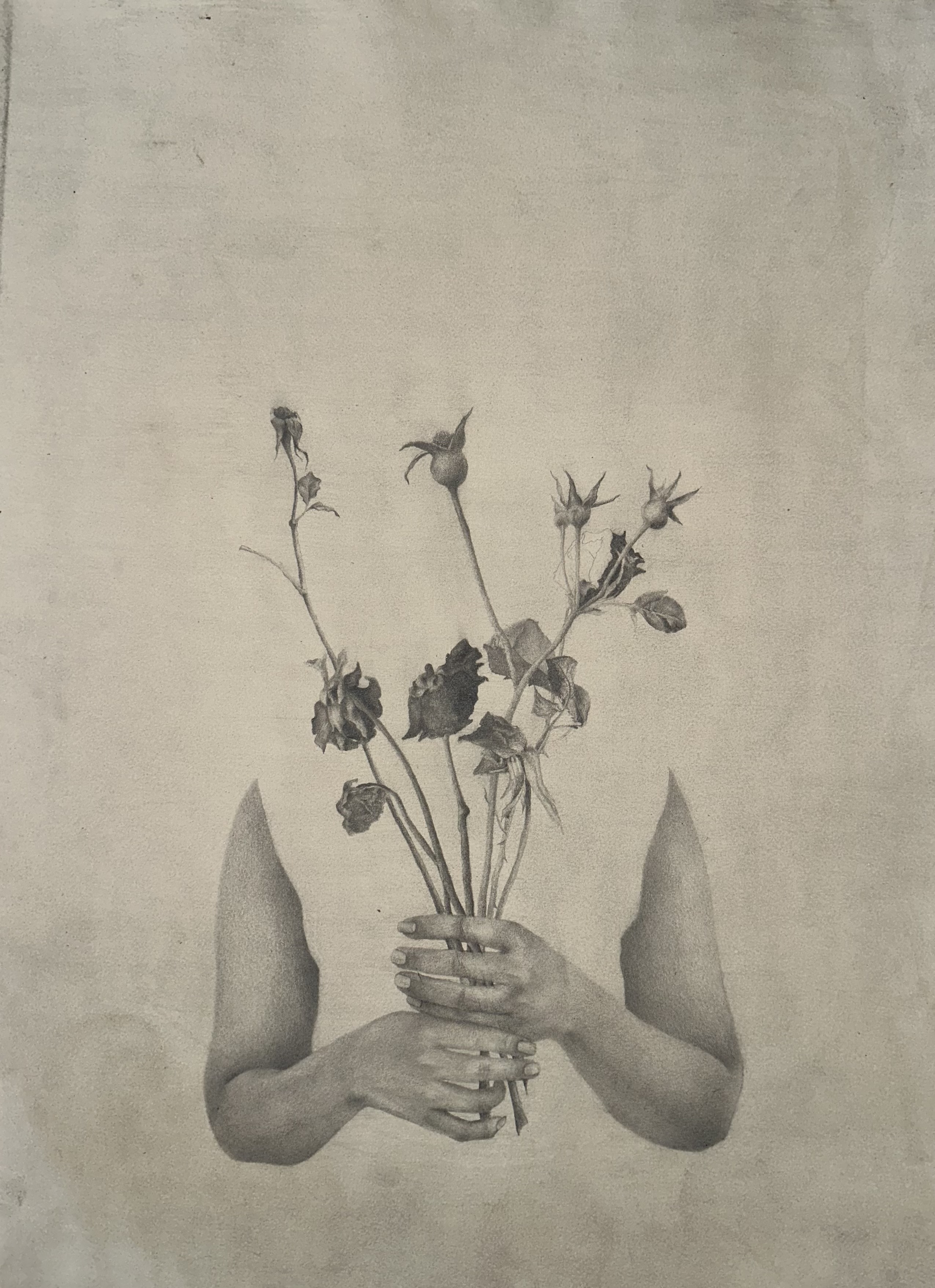 nostalgic recollections to record or distort memory, utilizing graphite as her primary medium to explore aesthetic dimensins as an artist